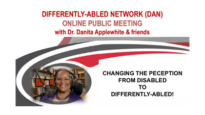 At DIFferently-Abled Network (DAN) meetings, educators, counselors, social workers, etc., listen to underserved Adults in the USA who are striving to succeed with a visible/HIDDEN disability (i.e. Mental health, chronic stress, pain, fatigue, diabetes, heart, cancer, etc.). Sign up to learn more.